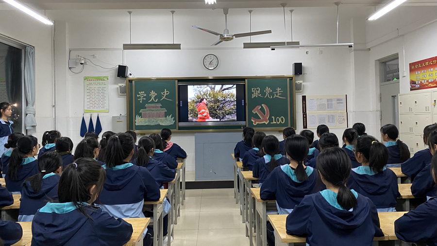 在主题团日活动中,各班团支书以PPT、音视频等方式,从星星之火可以燎原,到进入新时代中国特色社会主义,讲述了中国人民在中国共产党的领导下,筚路蓝缕,一步一个脚印,才有了如今繁荣富强的新中国。本次活动内容丰富、形式多样、气氛热烈,使党史学习教育深入青年内心,更加深刻地认识了只有在中国共产党的领导下,坚持走建设中国特色社会主义道路,才能发展中国,才能实现中华民族的伟大复兴。