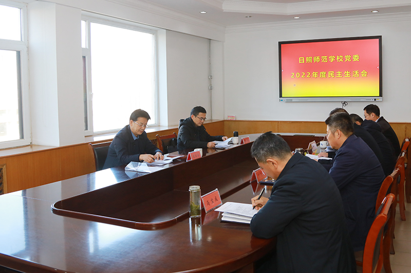 根据市委教育工委统一安排部署, 2月15日下午,日照师范学校党委召开2022年度民主生活会,以“全面贯彻习近平新时代中国特色社会主义思想,深刻领悟‘两个确立’的决定性意义,增强‘四个意识’、坚定‘四个自信’、做到‘两个维护’,团结带领党员干部群众以奋发有为的精神贯彻落实党的二十大作出的重大决策部署”为主题,联系学校党委工作,进行对照检查、党性分析,开展批评和自我批评。市教育局党组成员、总督学宋百合同志,市教科院副院长李波同志到会指导,学校党委班子全体成员参加会议。