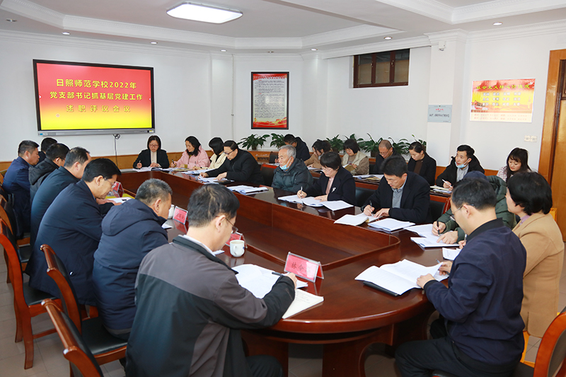 2月15日下午,日照师范学校党委召开2022年度党支部书记述职评议考核会议。市教育局党组成员、总督学宋百合同志,市教科院副院长李波同志到会指导。学校领导班子成员,各科室、部室负责人,各党支部委员会成员和教师代表参加会议,党建办负责同志列席会议。学校党委书记、校长刘伟同志主持会议并讲话。